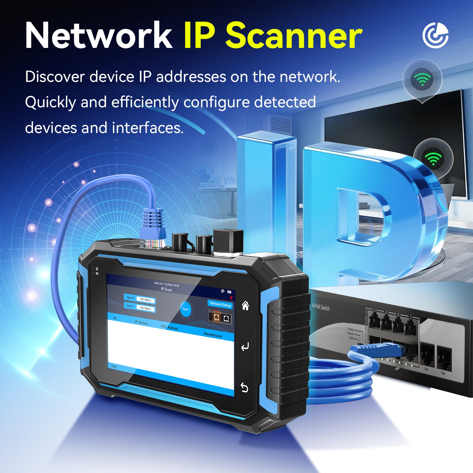 • IP Scan & Ping Functions: Includes network tools for testing IP addresses and connectivity, improving network diagnostics.