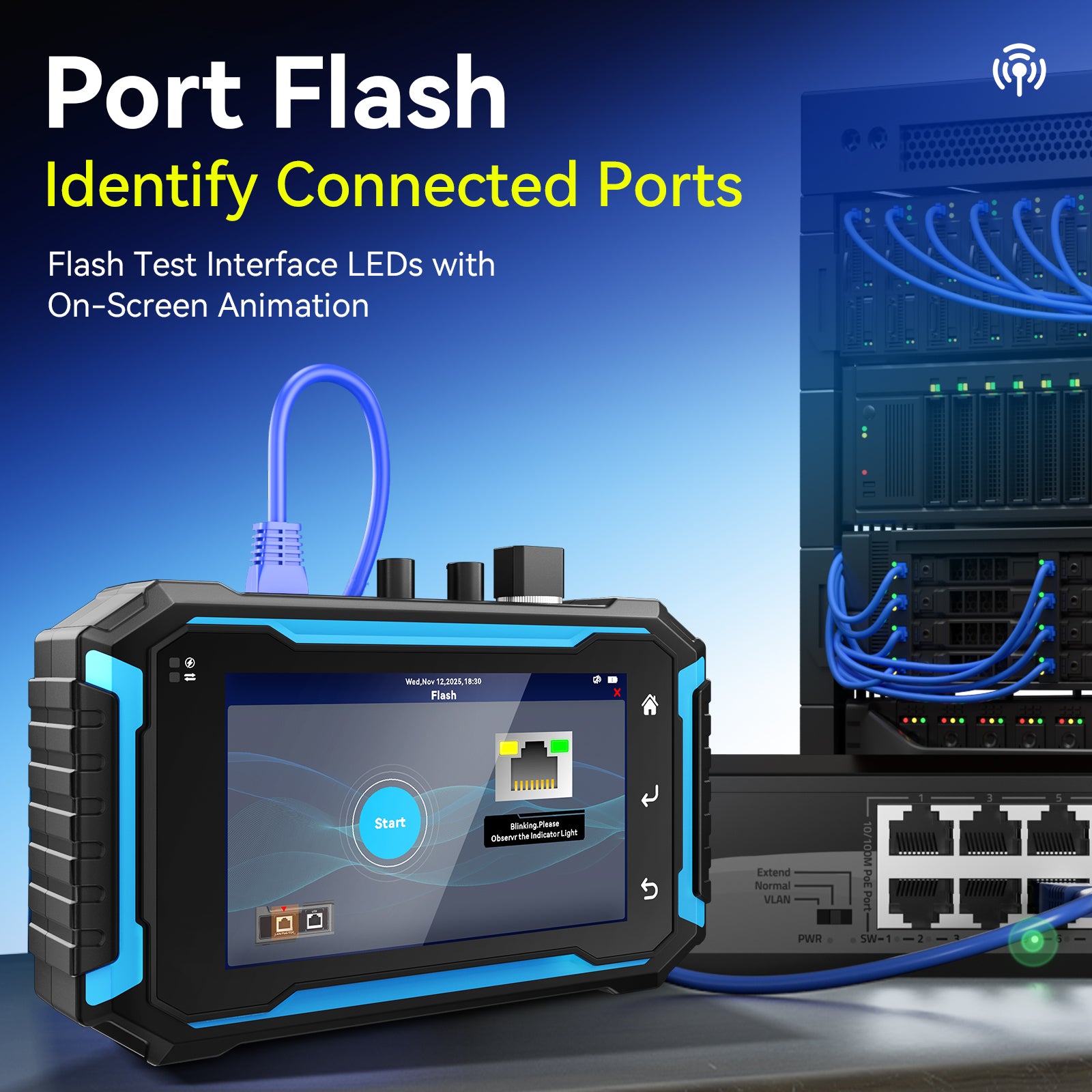 • Port Flash: ldentify connected ports, flash test Interface Leds with On-Screen Animation.
