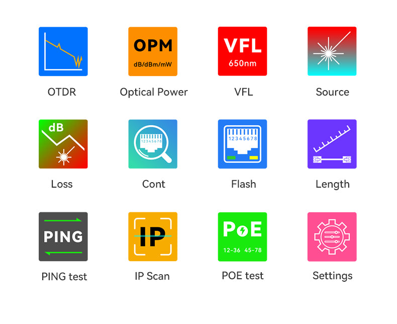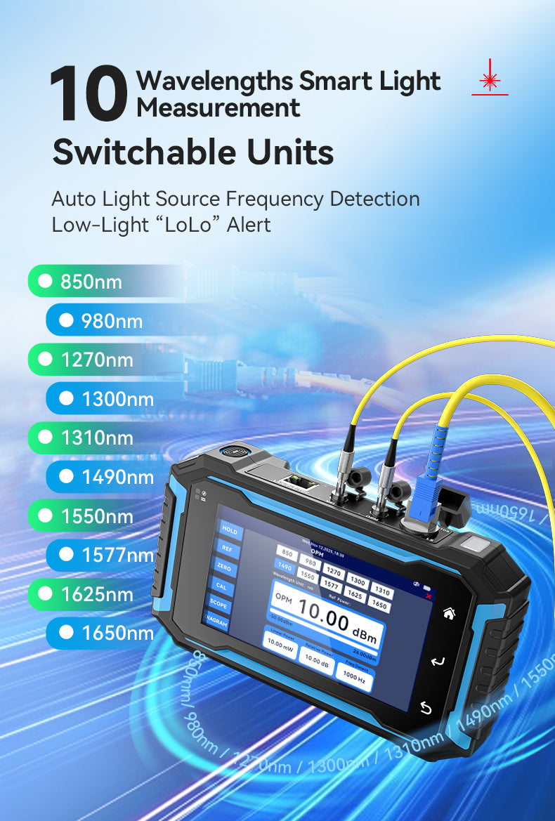 • Optical Power Meter & Stable Light Source: End-to-end loss testing and power verification without adding separate instruments — saves time and lowers tool inventory.