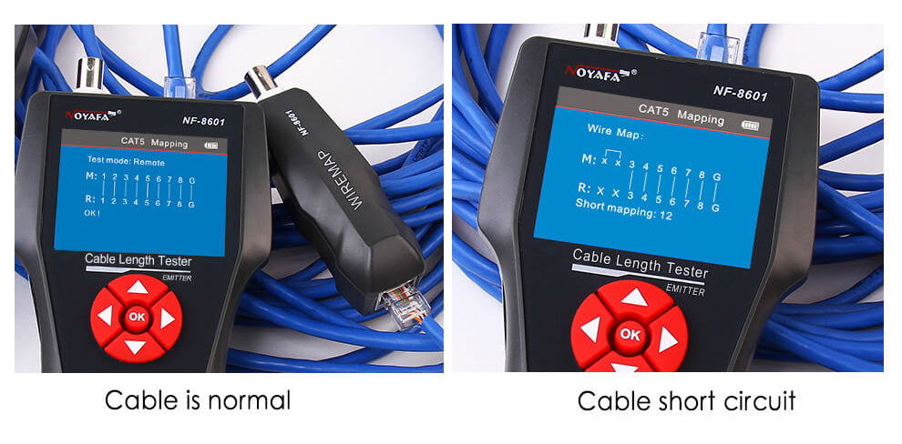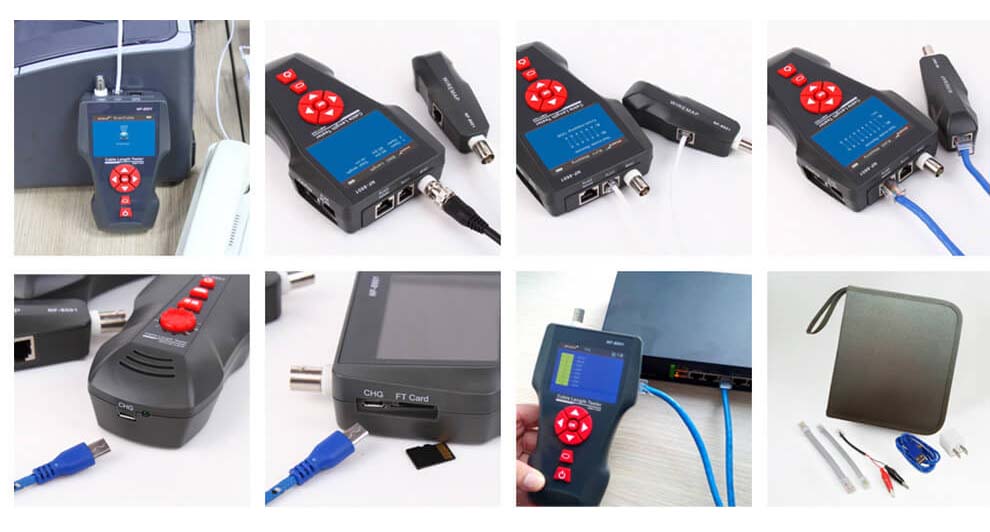 Test the continuity of RJ45, RJ11, BNC cables, such as open, cross, short, split pair etc.