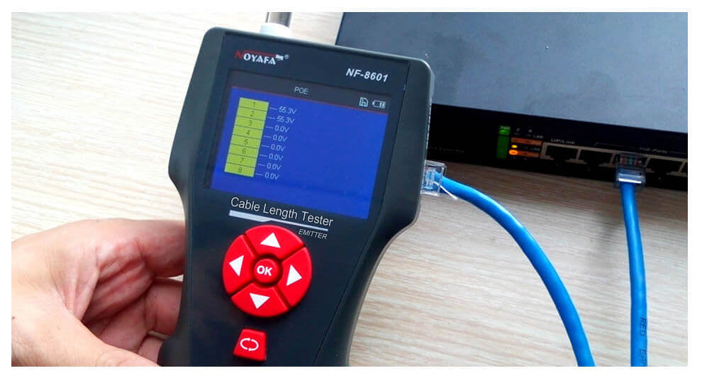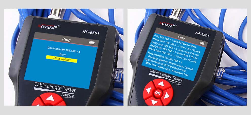 Run continuity test for up-to-8 network cables like RJ45, RJ11, and coaxial cables. Conduct cable tracing, PING test, PoE check, length measure, etc.