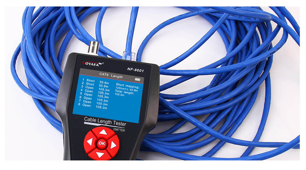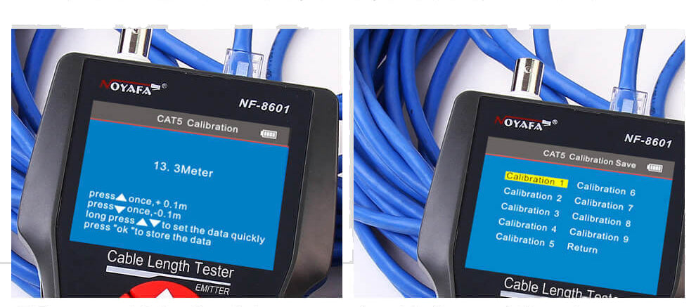 As the cable material are different, there might be some different in testing the cable length. So we need to calibrate the cable. Use a cable which is more than 10 meter, then enter the calibration function to measure the length. When we get the result, then save the data to the device. And the data can be loaded out while we measure length next time.