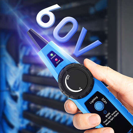 In dark corners or at night, turn on the light on the probe to trace wires easily.