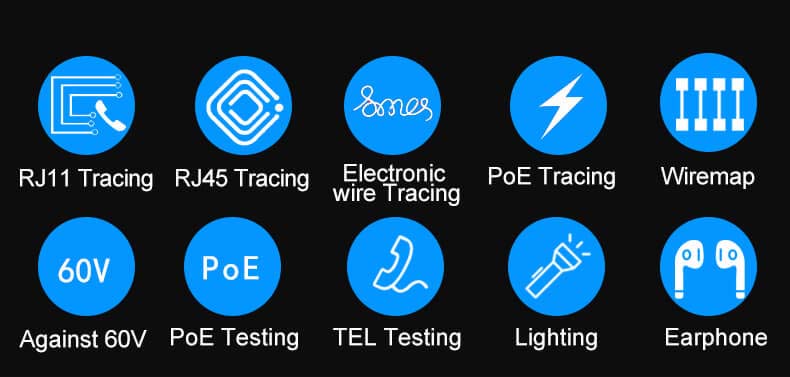 - Multi -Funktionstestmodus - Es unterstützt es, das STP -Kabel zu öffnen, kurz, das Kreuz des LAN -Kabels zu öffnen.