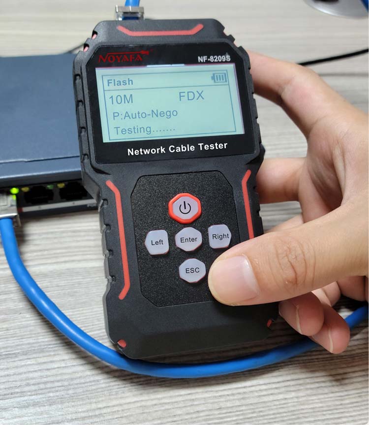 Schließen Sie das zu testende Netzwerkkabel an den Sender an, und das Anzeigenlicht des an dieses Netzwerkkabels angeschlossenen Anschlusses im Switch oder Router, das zu testen ist, blinkt bei gleicher Frequenz.