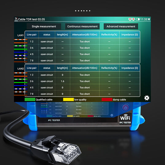 Run a TDR length test with this IPC tester to see the properties of connected LAN cables.