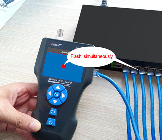 Stecken Sie die Netzwerkkabel (RJ45, RJ11, Coax) in NF-8601s. Testen Sie den Zuordnungsstatus. Identifizieren Sie Fehler wie Shorts, Öffnungen, Kreuzungen.