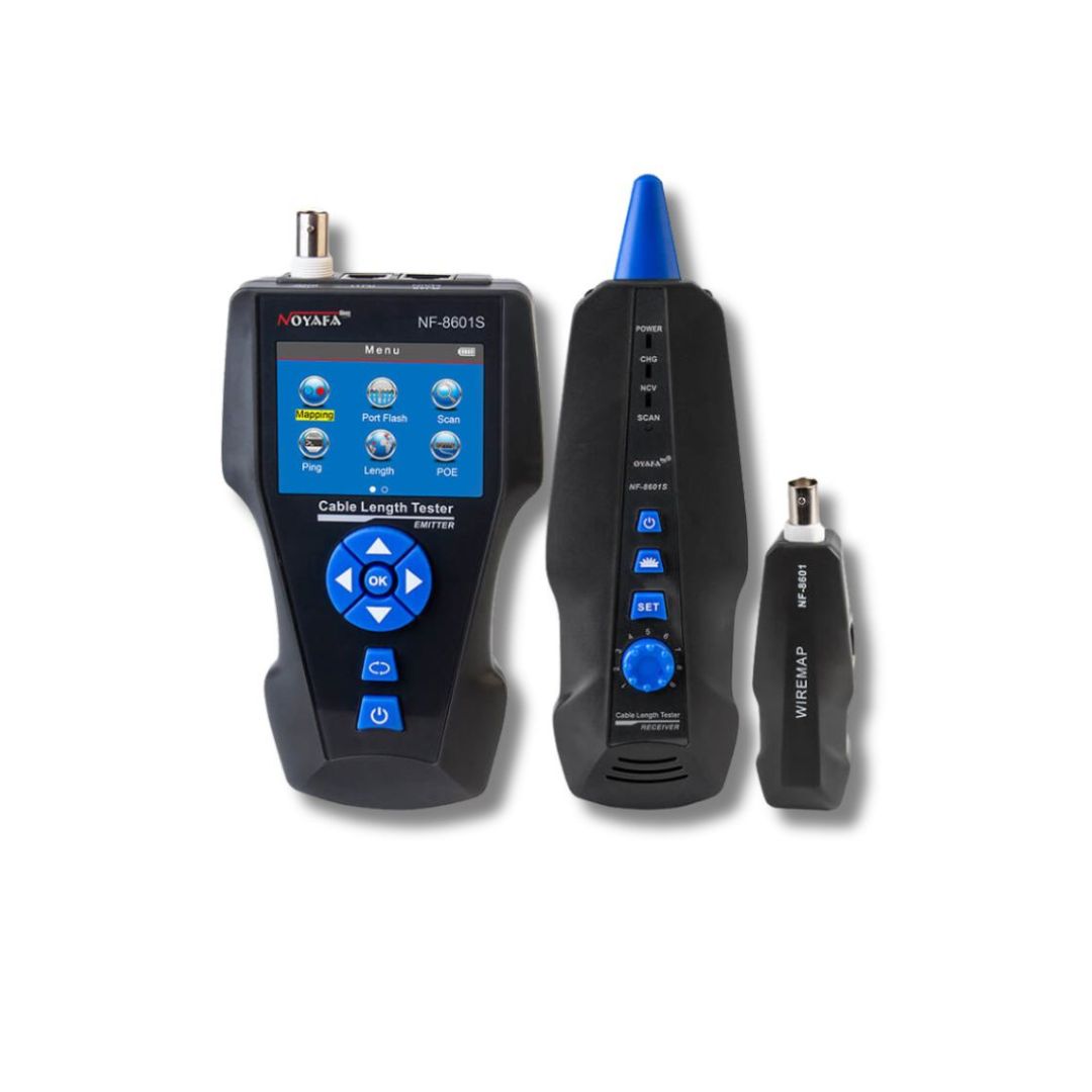 Stecken Sie die Netzwerkkabel (RJ45, RJ11, Coax) in NF-8601s. Testen Sie den Zuordnungsstatus. Identifizieren Sie Fehler wie Shorts, Öffnungen, Kreuzungen.