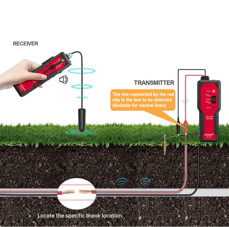 Trace el cable enterrado bajo tierra o en la pared en la pared fácil y rápidamente. Localice el punto de quiebre en un minuto.