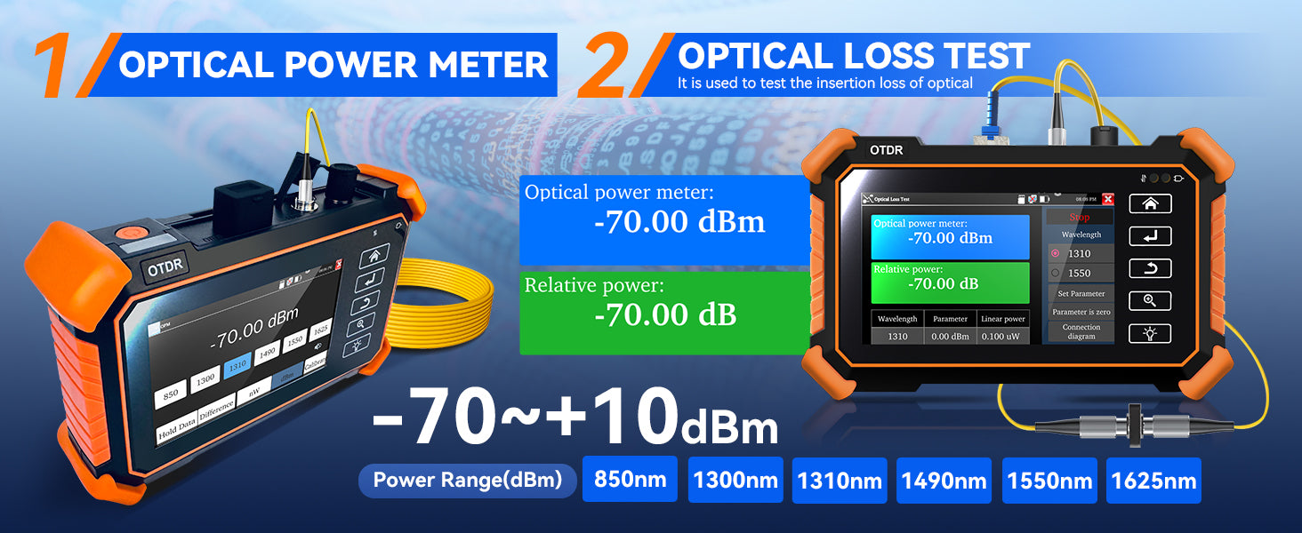 Optical Power Meter: Measures optical power from -70dBm to +10dBm, ensuring precise and reliable measurements.