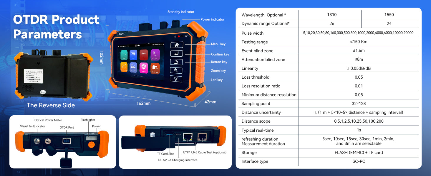 Dual Wavelength Support (1310nm/1550nm): Offers flexibility for various fiber testing scenarios with support for two key wavelengths.
