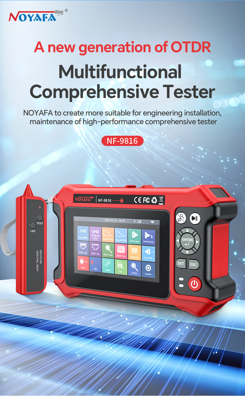 NOYAFA NF-9816 Strumento OTDR multifunzionale con OTDR automatico, esperto OTDR, mappa degli eventi, misuratore di potenza ottica a onda a divisione 10G, ecc.