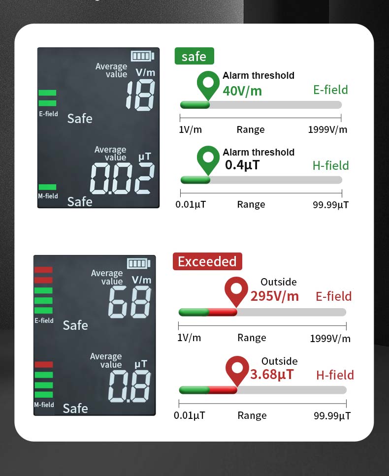 組み込みの高精度電磁放射センサーであるマイクロコントロールチッププロセッサは、電磁放射値を迅速かつ正確に測定できます。