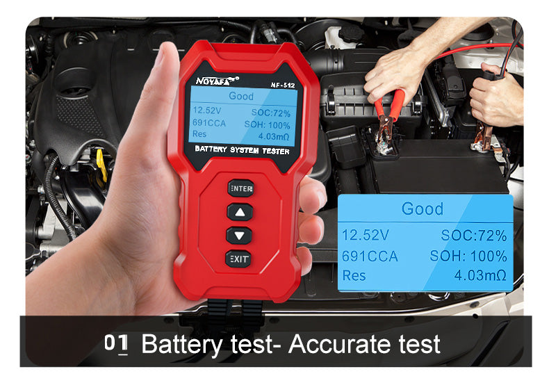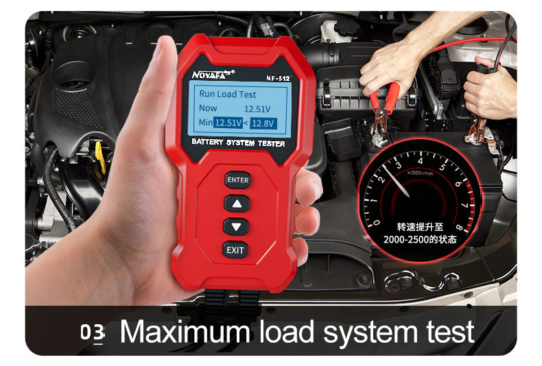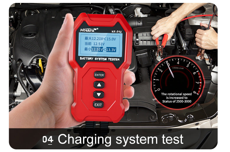 エンジンから電源を入れます。バッテリーの両端に2つのクランプを取り付けます。 NF-512のEnterを押して、テストを開始します。