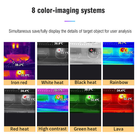 このサーマルイメージャーには、内部ストレージ用の8GBメモリカードが付属しています。さらなる分析のために、デバイス上の赤外線画像を直接測定および保存できます。