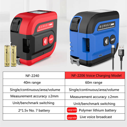You will find two models of laser tape measuring tools in NOYAFA. Both are in similar design and contributes to similar benefits.