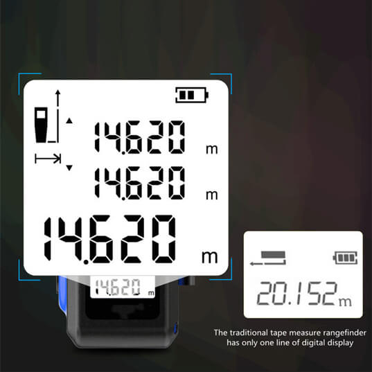 Tape and laser measurement modes are available with easy steps.